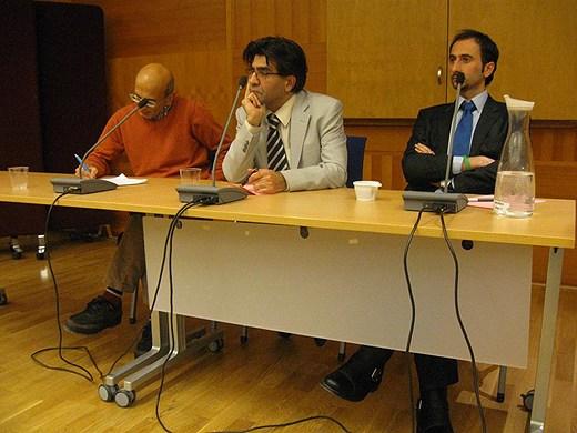 و سخنرانی های مهرداد درویش پور، مرتضی اصلاح چی و محمد رفیع محمودیان در باره جنبش دانشجویی ایران شنبه ۲۰ آذر ۱۳۸۹- ۱۱ دسامبر از سمت راست: مرتضا اصلاح چی، مهرداد درویش پور و...